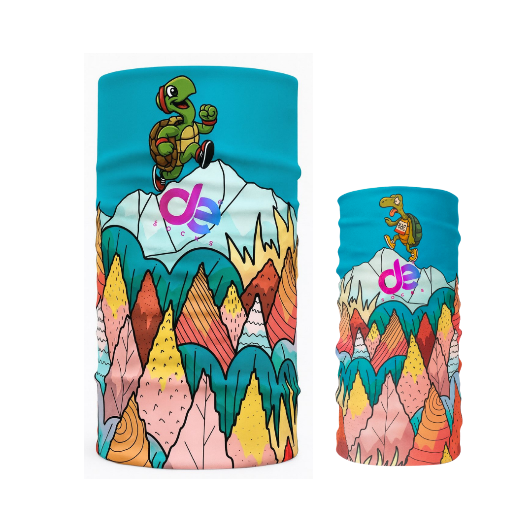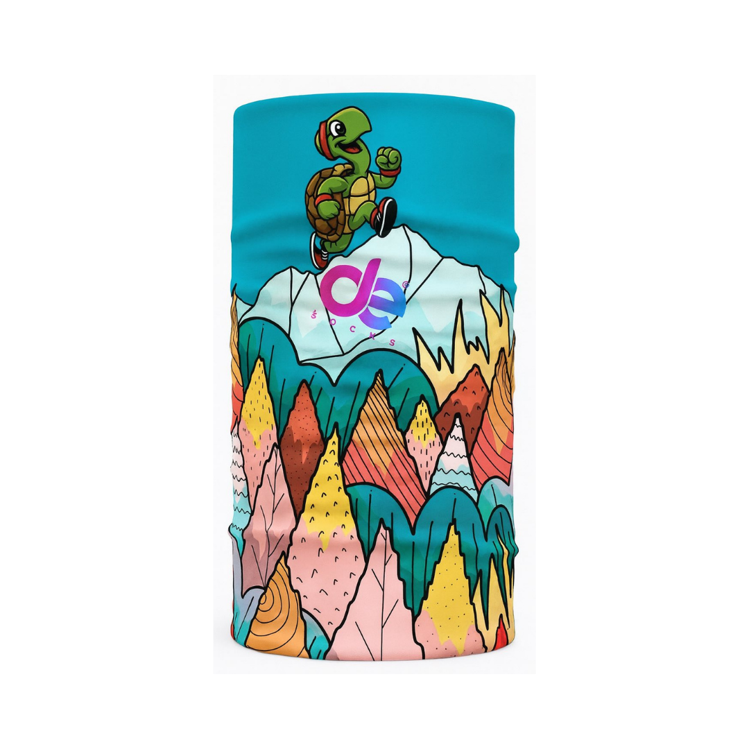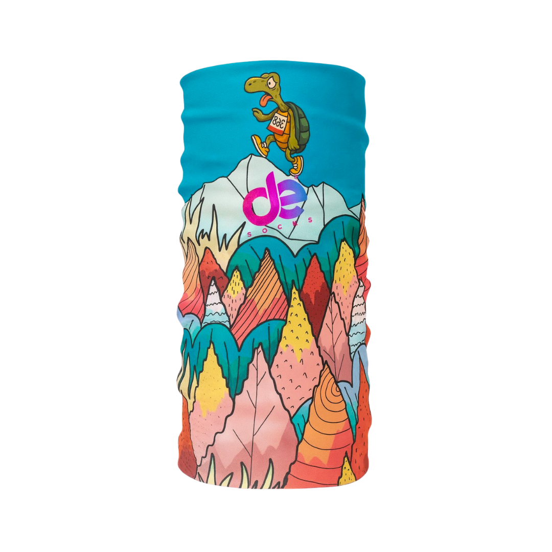 The “Mountain Turtle” Gaiter is a multifunctional sports buff, ideal for running, hiking, and any outdoor activity. The design featuring a turtle climbing the mountain adds character and a unique style to every trail.